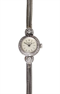 Ladies'-wristwatch 1960/'70s, HUBBUCH, white gold 585/000, manual winding, stick index, lenght = c. 17.5 cm, total c. 19,8 g