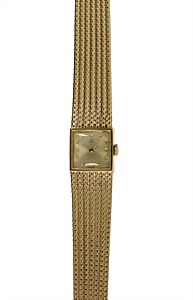 Ladies' wristwatch, manual winding, yellow gold 750/000, signed EBEL, point index, case c. 14.7 x 14.7 mm, folding clasp, lenght = 16.5 cm, clock is running, nice condition ! total 34.0 g