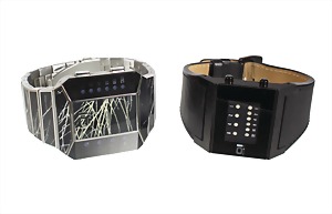 lot: binary clock, men's wristwatch, 1 x digital, quartz Kerala Trance KT102B1, unchecked !, 1 x BINARY TIME THE ONE SPLIT SCREEN SC111B2, steel strap with folding clasp, case c. 42.5 x 48.2 mm, clock is running !