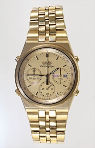 men's wristwatch, VINTAGE, SEIKO chronograph, quartz, gold/steel, day/weekday on 3 o'clock, diameter = 37.2 mm, metal watch strap with folding clasp, unchecked !