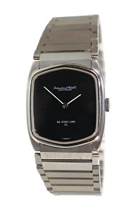 men's wristwatch, IWC DA VINCI LINE SL, Switzerland 1970s, manual winding, steel, black clockface, white baton hands, pressed bottom, case c. 29.0 x 31.0 mm, expanding bracelet with ladder clasp, lenght = 20 cm, unworn, good/very good condition !
