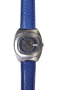 men's wristwatch, VINTAGE late 1970s, BULOVA ACCUTRON (tuning fork mechanism), quartz, steel, silver colored clockface, stick index, centre second, date/day, tonneau-shaped case, diameter = 36.0 mm, screwed bottom, neutral leather watchstrap mi BULOVA pin buckle, unworn, clock is running (new battery)