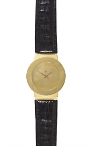 men's wristwatch NABUCCO, quartz, yellow gold 750/000, signed Dosch, handmade masterpiece (unique clock), Sapphire glass, broad bezel, heavy case, screwed bottom, diameter = 31.7 mm, height = 6.0 mm, Kal. ETA 976.001, sharkskin watchstrap with 750/00 pin buckle, total 41 g