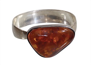 Armreif/Spange, VINTAGE 1970er Jahre, Silber 925/000, sig. N.E.FROM HANDMADE DENMARK, aufklappbare Bernsteinfassung, im Verlauf gearbeiteter Reif, Innen: 57,8 x 53,0 mm