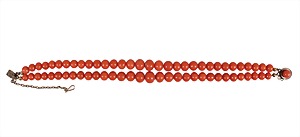 corals bracelet (graduated) around 1880/1900, gold colored clasp, corals diameter = 5.5 - 9.0 mm, box clasp with safety chain, length = c. 20.5 cm, for this item is shipping to countries outside of the EU not possible!