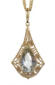 necklace with pendant, yellow gold 585/000, pendant with aquamarine (fantasy cut), height = 30.0 mm, fine wire construction, necklace, length = 41.0 cm