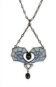 necklace, BENGEL (Idar-Oberstein) 1930-'33s, white metal, clinker/bakestone pattern, front height = 27.5 mm, length = c. 39.5 cm, literature in the museum catalog page 92 and 93 (similar)