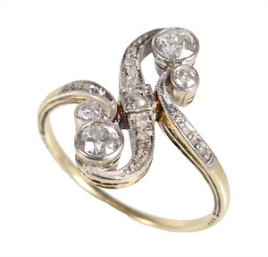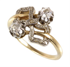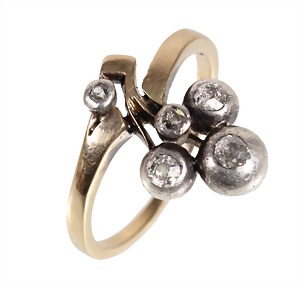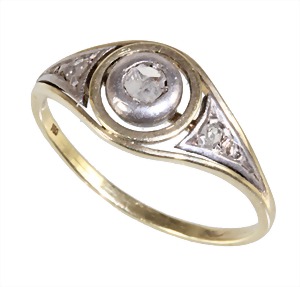 ring, early 20th century, yellow gold 585/000, 1 old cut-diamond c. 0.15 ct white, in wreath 8 rose cut diamonds white, ring head c. diameter = 8.0 mm, ring width c. 51.5