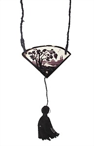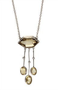 necklace, ART-DECO, IDAR-OBERSTEIN 1920/'30s, silver, central smoky quartz, 3 hanging rods, front: height = 45.5 mm, length = 47.0 cm