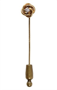 brooch, ART-DECO 1930/'40s, yellow gold 750/000, signed, central old cut-diamonds c. 0.80 ct tw/w-vsi, very high cut (nice brilliance), at the side 2 more old cut-diamonds c. 0.32 ct tw/w-vsi, middle course paved with 26 rose cut diamonds (diamonds set in platinum), length = 73.1 mm