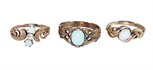 Lot Schmuck um 1880/1920, GG 585/000, 1 Ring mit Türkis u. 1/2 Perlen besetzt, RW ca. 53; 1 Ring mit Achat Gemme, Frauenporträt nach rechts, RW ca. 55, beide Frankreich, Rosegold 750/000; 1 Nadel Rosegold 333/000, besetzt mit 2 Korallenboutons, L = 59,0 mm, total 6,9 g Für diesen Artikel ist ein Versand in nicht EU-Länder leider nicht möglich !