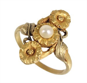 lot: ring and brooch THEODOR FAHRNER Pforzheim 1940/'50s (filigree jewelry), silver 925/000, ring: signed TF 925 FAHRNER, marcasites and pearl, ring width c. 60, brooch: signed TF 925 ORIGINAL FAHRNER, length = 51.7 mm. literature in Arnoldsche THEODOR FAHRNER SCHMUCK, filigree jewelry page 229