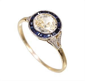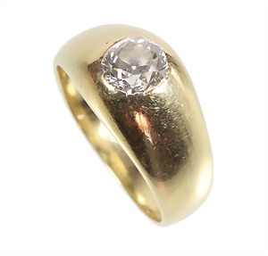 ring, yellow gold 585/000, 1 old cut-diamond tinted white/crystal c. 0.95-1.0 ct mm, (the stone is extremely high cut ! diameter = c. 6.2-6.3 mm), ring width c. 54, total 6.9 g