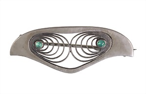 Brosche, TRAUBENHENKEL, Silber 925/000, sig. GEORG JENSEN DENMARK 925S N° 217 (Harald Nielsen 1892 – 1977 Hellerup für G. Jensen), ca. 29,5 x 45,8 mm
