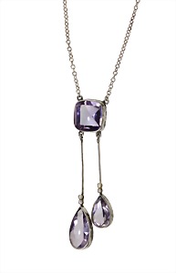 necklace, ART-DECO, IDAR-OBERSTEIN 1920/'30s, silver, central amethyst, 2 hanging drops (all faceted), 4 small pearls, front: height = 53.0 mm, length = 48.5 cm