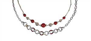 lot: 2 necklaces, BENGEL (Idar-Oberstein), ART-DECO 1930s, white metal, red-brown elements, length = 40.5 and 46.0 cm