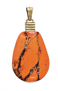 pendant, ART-DECO 1930s, gold plated metal , WMF IKORA, orange glass, height = 65.3 mm