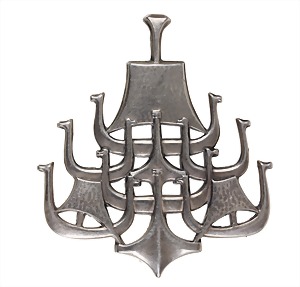 pendant Viking ships, ART-DECO 1930s, DAVID ANDERSEN, silver 925/000, signed D-A NORWAY STERLING INV.B.S.O., c. 46.0 x 51.3 mm, can also worn as brooch, a brilliant design !