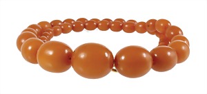 amber necklace BUTTERSCOTCH, ART-DECO 1930-'40s, yellow clasp, olives diameter = c. 5.5-16.5 mm, olive in the middle c. 19.0 x 16.5 mm, lenght = c. 45.5 cm, total 21.4 g