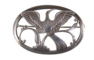 brooch, BIRD OF PARADISE, silver 925/000, signed GEORG JENSEN DENMARK 925S N° 328 (Arno Malinowski 1933-1944 for G. Jensen), c. 44.3 x 31.2 mm