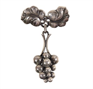 brooch, bunch of grapes, silver 925/000, signed GEORG JENSEN DENMARK 925S N° 217 (Harald Nielsen 1892 - 1977 Hellerup for G. Jensen), c. 29.5 x 45.8 mm