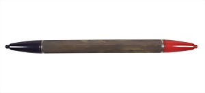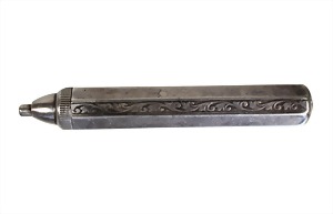 Skurriles Schreibgerät, ART-DECO 1930/40er Jahre, Silber 925/000, sig. gL Stern (Symbol), strukturiertes Gehäuse, Drehstift für schwarze u. rote Mienen (D = 4,0 mm), Kappen in schwarz u. rot, L = ca. 18,5 cm, D = 13,8 mm
