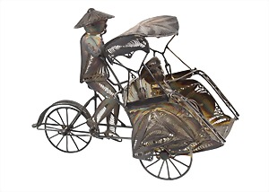 object: bike ricksha, silver (tested), fine worked wires, wheels and cab are moveable, length = 98.5 mm, total 51.5 g