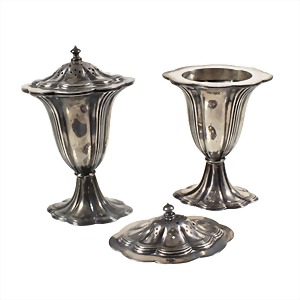 1 Paar Gewürzstreuer, England; Silber 925/000, sig. SHEFFIELD EDWIN VII 1901-02, ovaler Korpus mit abnehmbarem Deckel, H = ca. 98,0 mm, total 120,1 g
