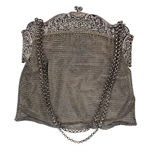 bag around 1900, silver 800/000, signed, bar is textured with delicate flower motifs, width = c. 18.0 cm, heavy produced, total c. 408.0 g, good condition !