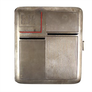 Zigarrettenetui, ART-DECO 1920/30er Jahre, Silber 935/000, sig. Bek. E. Gibion (Pforzheim), graphisches Muster mit schwarzer u. roter Emailleeinlage, innen feuervergoldet, ca. 88,3 x 77,5 x 16,0 mm, schwer gearbeitet !