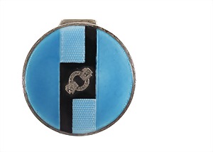 small powder compact (England), ART-DECO, silver 925/000, signed TURNER u. SIMPSON Birmingham 1930, bright blue translucent and black enamel, gouilloched, decorative element set with markasites, diameter = 53.5 mm, height = 13.8 mm, very nice condition !
