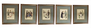 5 folk costumes pictures, 2 x Teegernseer Tal, 1 x Berchtesgadener Land,1 x from the Chiemgau and 1 x from the Aichach region, all with wooden frame, c. 21.0 x 26.0 cm