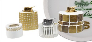 lot: smoking utensils, ROSENTHAL 2 x QUATRE COULEURS signed Björn Winblad, all in all 3 lighters, 1 bowl D= 1.0 cm and 1 small can