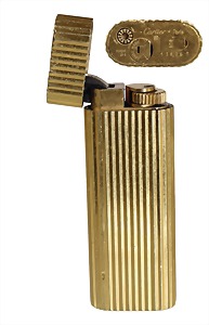 Gas-Feuerzeug, VINTAGE, CARTIER Paris SWISS MADE, vergoldet, N° 1 38 26 T, L = 70,0 mm, funktionsfähig !