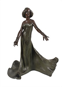 Wiener Bronze, JUGENDSTIL um 1900, Dame mit hoch gesteckten Haaren im wallenden Abendkleid, farbig bemalt, H = 17,5 cm, schöne Pattina !