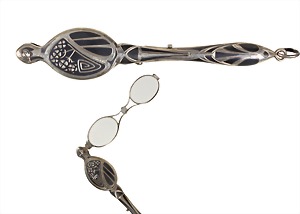 lorgnette, art nouveau France around 1900, silver 900/000, surfaces with Tula inlay, length = 15.8 cm, nice condition !