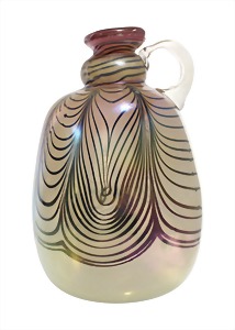 Vase von der Glashütte EISCH, sig Eisch 1981 (Erwin Eisch geb. 1927), opalines Glas, kl. Henkel, D = 13,5 cm, H = 19,5 cm