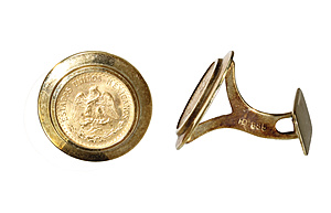 Ein Paar Manschettenknöpfe, GG 585/000, zwei Mexikanische Pesos, D = 18,2 mm, total 11,06 g