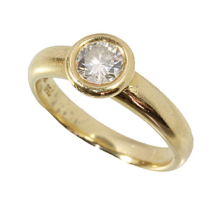 ring, solitaire by CHRIST, yellow gold 750/00, signed CHRIST, 1 brilliant, c. 0.50 ct, a bit yellowish (top cape)-vvsi (flawless ?), ring width c. 54.5