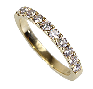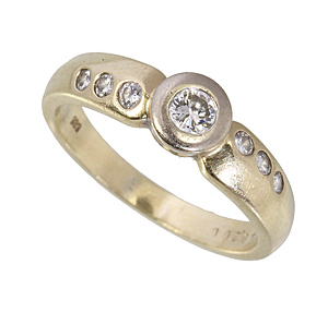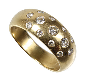 ring, yellow gold 750/000, 13 brilliants c. 0.40 ct (engraved) tw-vsi, ring width c. 49, total 4.5 g, a ring for the little finger!!