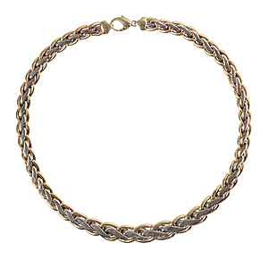 Dekoratives Collier im Verlauf, GG/WG 585/000, vorne: H = ca. 13,0 mm, hinten: H = 9,0 mm, L = 45,0 cm, total 50,6 g. Durch seine weiche Form liegt das Collier angenehm auf der Haut.