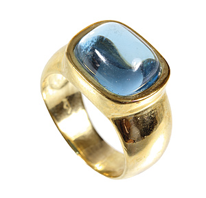 ring classic, yellow gold 333/000, blue topaz, width = 13.0 mm, ring width c. 56, total 9.9 g