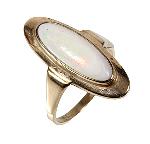 ring, yellow gold 333/000, opal with mainly red and grenn/blue color shades, ring head c. 9.5 x 25.0 mm, ring width c. 52.5