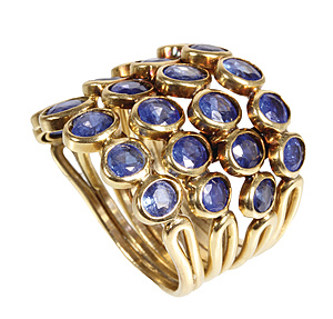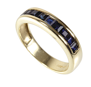 ring CHRIST 1970/'80s, yellow gold 585/000, 9 sapphires with carré cut c. 1.0 ct, ring width c. 55.5, total 4.0 g