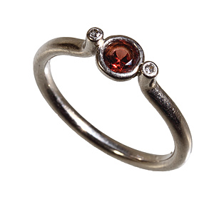 ring, platinum (tested), central garnet, at the side 2 diamonds white, ring width c. 52.5, total 3.1 g