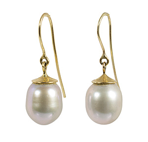 1 Paar Perl-Ohrhänger, GG 750/000 (geprüft), 2 Süßwasser-Perlen, H = ca.30,0 mm