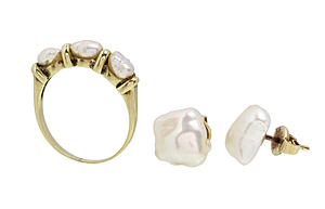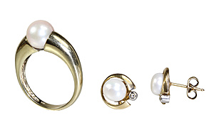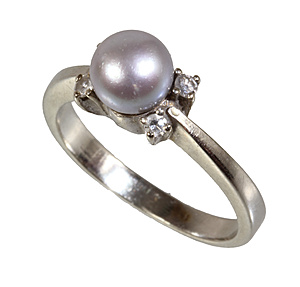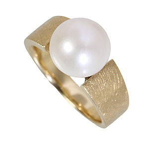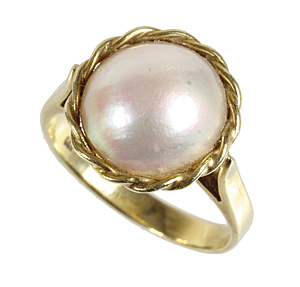 Ring, GG 585/000, Mabe-Perle im gekordelten Rand, Ringkopf D = 14,2 mm, RW ca. 55