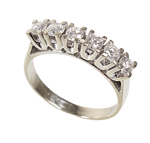 Ring, GG 585/000, 1 zentraler Brillant (D = 4,4 mm), seitlich 6 weitere Brillanten tw-vvsi/vsi, ca. 0,60 ct (eingraviert), RW ca. 55