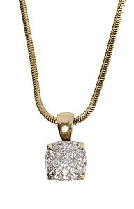 necklace with pendant, white gold 585/000, pendant with blue topaz with carré cut c. 3.3 g, 4 brilliants c. 0.06 ct w-si, height = 17.0 mm, bracelet : length = c. 43.0 cm, total 13.0 g