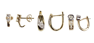Lot: WG 585/000, 1 Paar Rubinohrstecker, 24. Stck 8-kant Diamanten, ca. 8,7 x 9,7 mm; 1 Anhänger, GG/WG 585/000 (geprüft), 7 Brillanten ca. 0,18 ct w-si, H = 20,8 mm, total 4,4 g